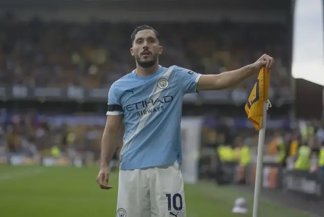 曼城(4321):多納魯馬/努內(nèi)斯、魯本-迪亞斯、格瓦迪奧爾、奧賴?yán)?B席、賴因德斯、尼科-岡薩雷斯/謝爾基、福登/哈蘭德