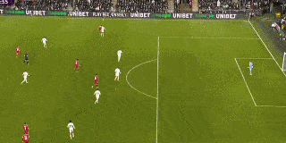 第37分鐘,瓊斯外腳背斜塞,麥卡利斯特突然插上,皮球在門將干擾下出了底線,主裁選擇判罰角球。